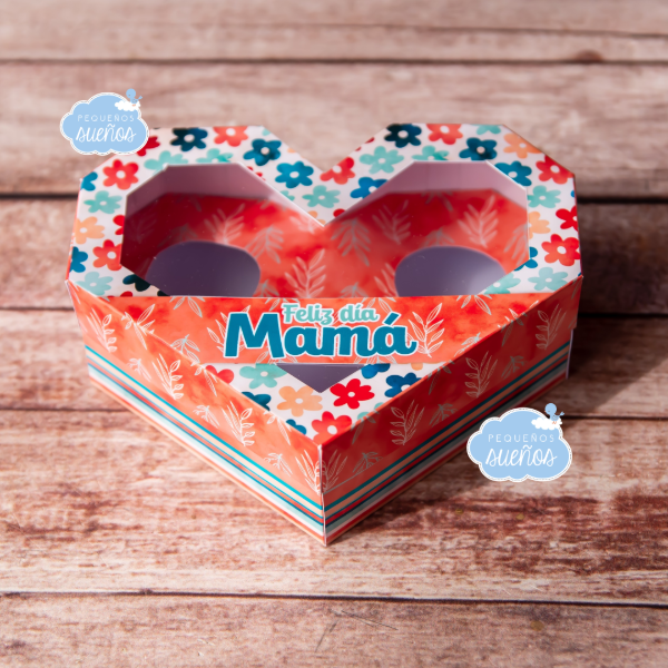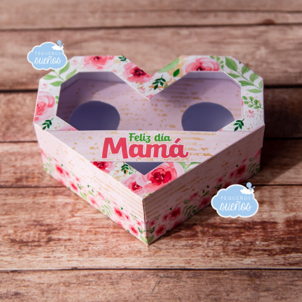 Kit para que vos misma imprimas y armes estas hermosas cajitas con forma de corazón para Mamá.
